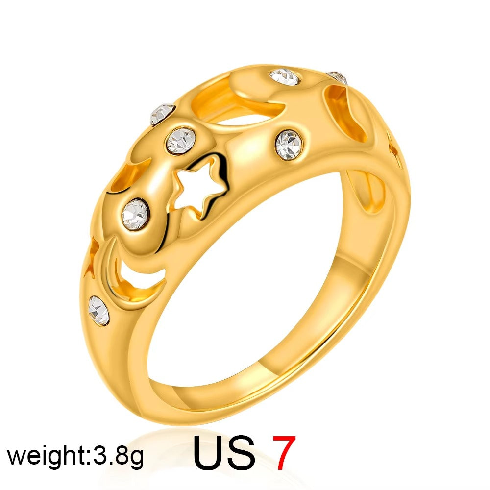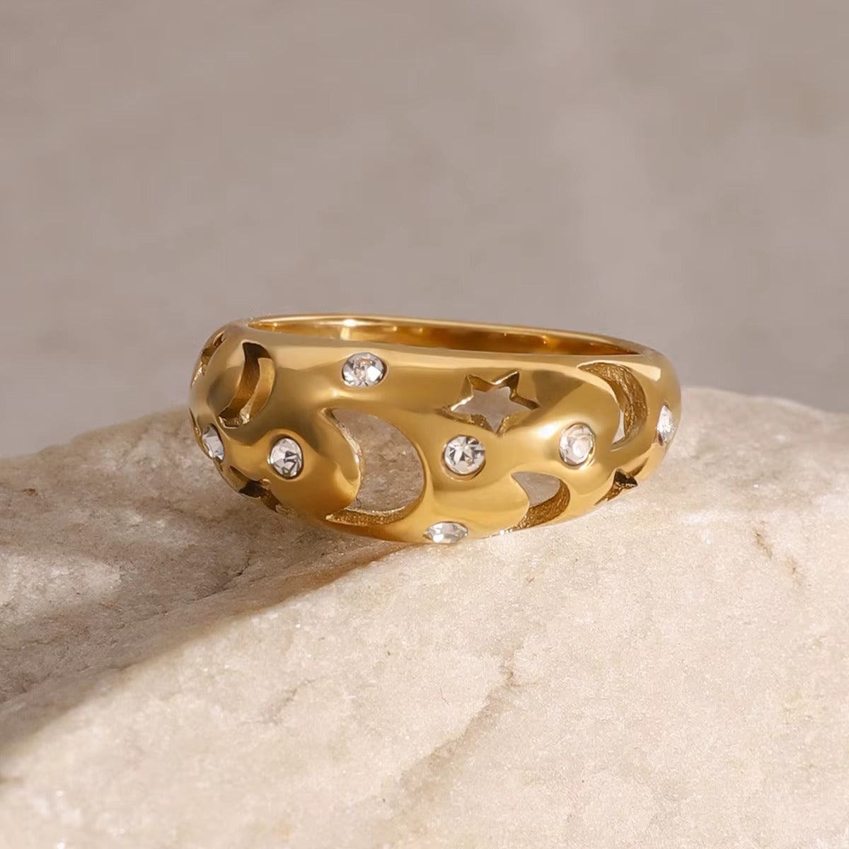 18k Gold Stainless Steel Moon Star Ring