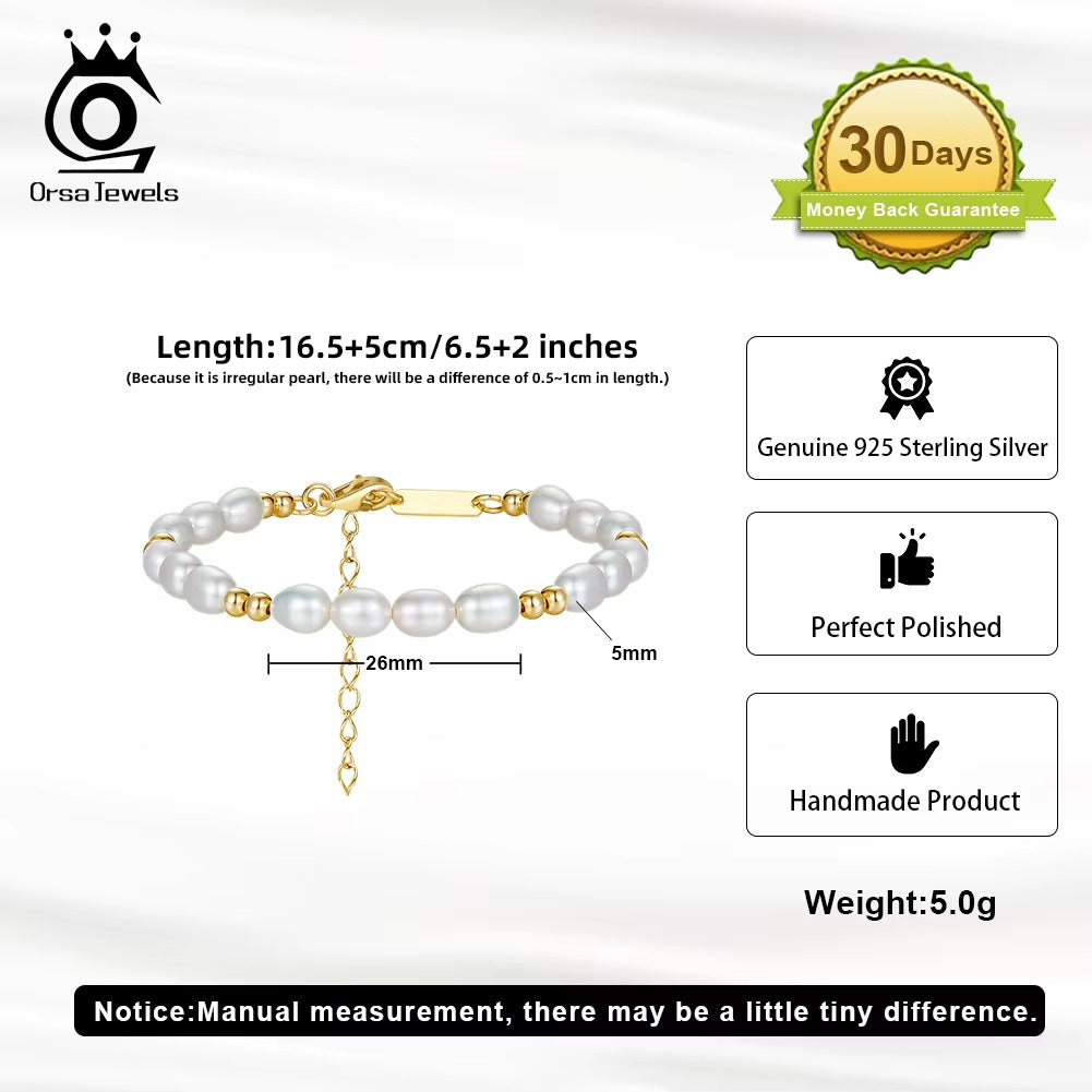 Gold Link Bracelet with Floating Pearl Charms