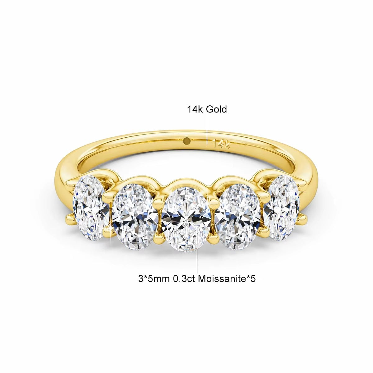 Real 14K Gold Oval Cut Moissanite Rings for Women